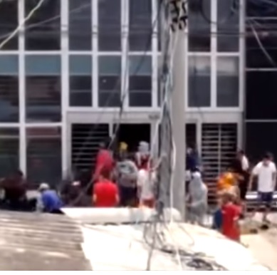 Turba vandalizando supertienda Olímpica