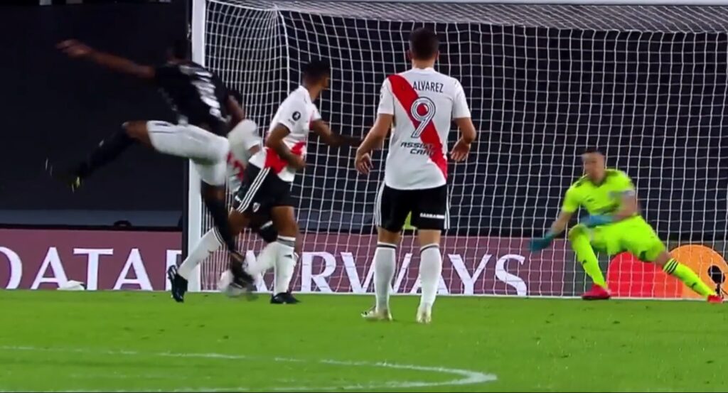 En ese dominio, al minuto 25 del partido, una clara falta en el área contra Borja, no fue sancionada por el árbitro y hasta los comentaristas argentinos quedaron sorprendidos porque era “penal y expulsión”. Pero el árbitro paraguayo Juan Benítez, se hizo el de la vista gorda.