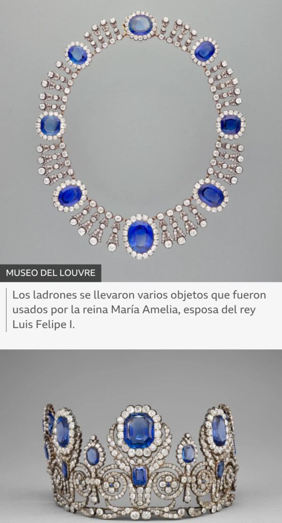 También se llevaron una corona de la emperatriz Eugenia, pero fue recuperada con daños cerca del museo después de que los ladrones aparentemente la dejaran caer.