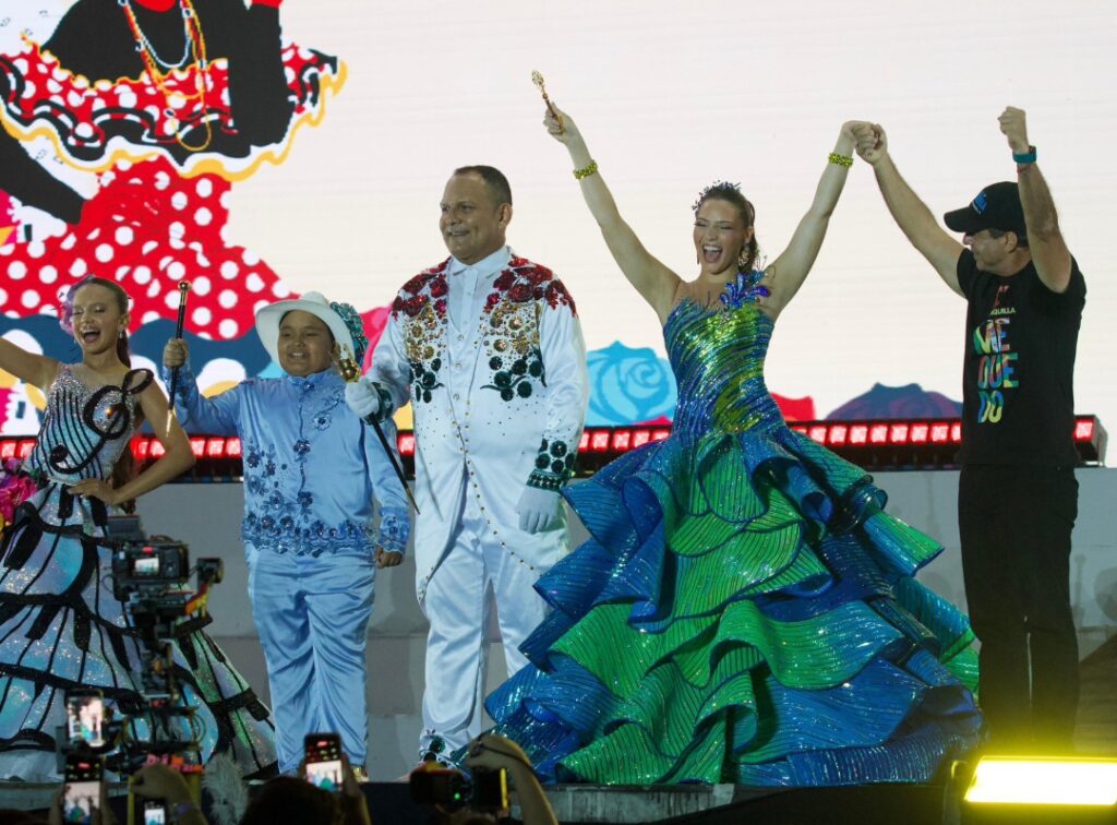 El rey Momo, Adolfo Maury, rindió un emotivo tributo a la danza del Congo Grande, símbolo de renacer, fortaleza y resiliencia. La monarquía infantil, Sharon Acosta y Joshua Ortiz, que con entusiasmo y alegría representaron los semilleros que heredan, preservan y proyectan nuestro patrimonio a las nuevas generaciones.