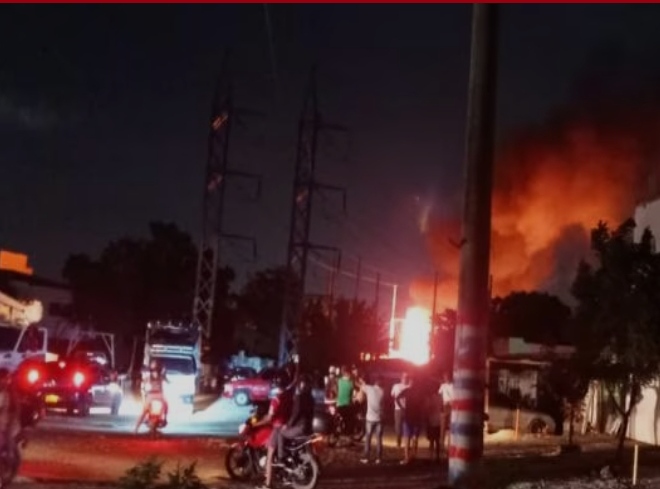 La empresa Air-e indicó, de forma preliminar, que el Cuerpo de Bomberos trata de sofocar las llamas en el mencionado sitio.