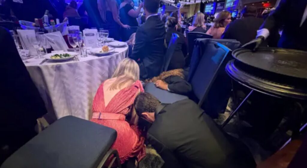 Otros asistentes permanecieron en el salón de baile, confinados en sus puestos, y muchos periodistas intentaban informar a sus respectivas organizaciones.