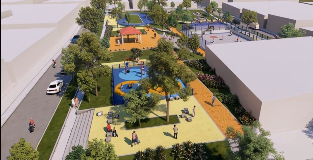Las obras se llevarán a cabo en un área total de 5.910 metros cuadrados, que incluirán zona verde, juegos infantiles, cancha múltiple, kiosco comunitario, gimnasio biosaludable, plazoleta y senderos, pista de patinaje recreativa, zona de picnic, gradería, bancas, salas urbanas y cubos.