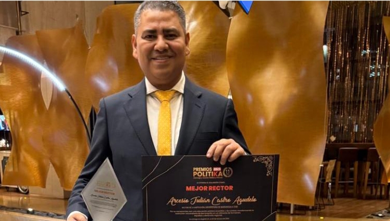 El rector de la Institución Universitaria de Barranquilla (IUB), Arcesio Castro, recibió el galardón a Mejor Rector del País en los Premios Politika 2025, en Bogotá.